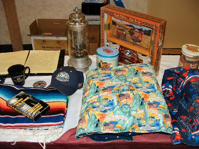 Scale models of the EC-121, a wall clock, plaques, bottles of wine commemorating this reunion and logo cigarette lighters were on the auction block