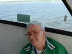 Sabine, Frank Doty looking over the captains controls, Buster Tipton seated in back