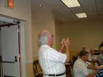 organization, Linda Monohan listens in. Norbert Monohan listens in at another