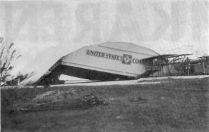 COAST GUARD HANGAR at NAS: (left) This is what was left of it after Karen's notorious passage. TYPHOON KAREN. like the man who came to dinner. Blew in uninvited to wreck havoc with this Agana lunch counter. (ComNavMar Photos)
