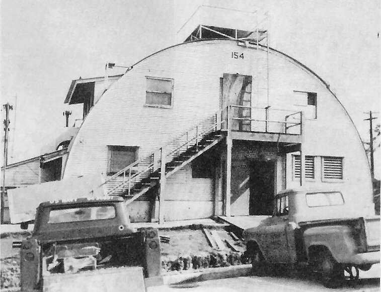 Reinforced concrete structures remained standing; however, the sudden drop in pressure and wind in gusts caused explosive action forcing window panes and louvered casements outward. Subsequent high steady wind and continuous rain associated with this pumping action cleaned out the interiors or caused water damage beyond recovery of interior furniture and effects remaining. Military quarters which were wholly or partially air-conditioned sustained greater damage since the acetate covering prevented the adjustment of pressure falls outside when occupants did not break the seal by removing the acetate or opening louvers to the leeward to permit the house to "breath."