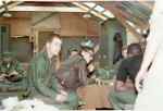 - 1st. Picture from the left: Inside Mag 13 hut. Guy looking up, I think is Woody Van Kirk, He was a radioman