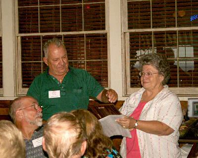 Judy Stotts presents appreciation plaque to Ed and Sally Metzger