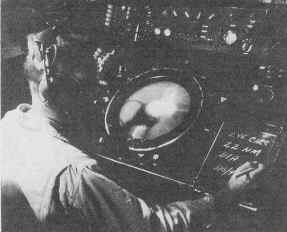 AS THE WEATHER PLANE FLIES INTO THE STORM A RADAR WEATHERMAN MEASURES EYE OF THE TROPICAL